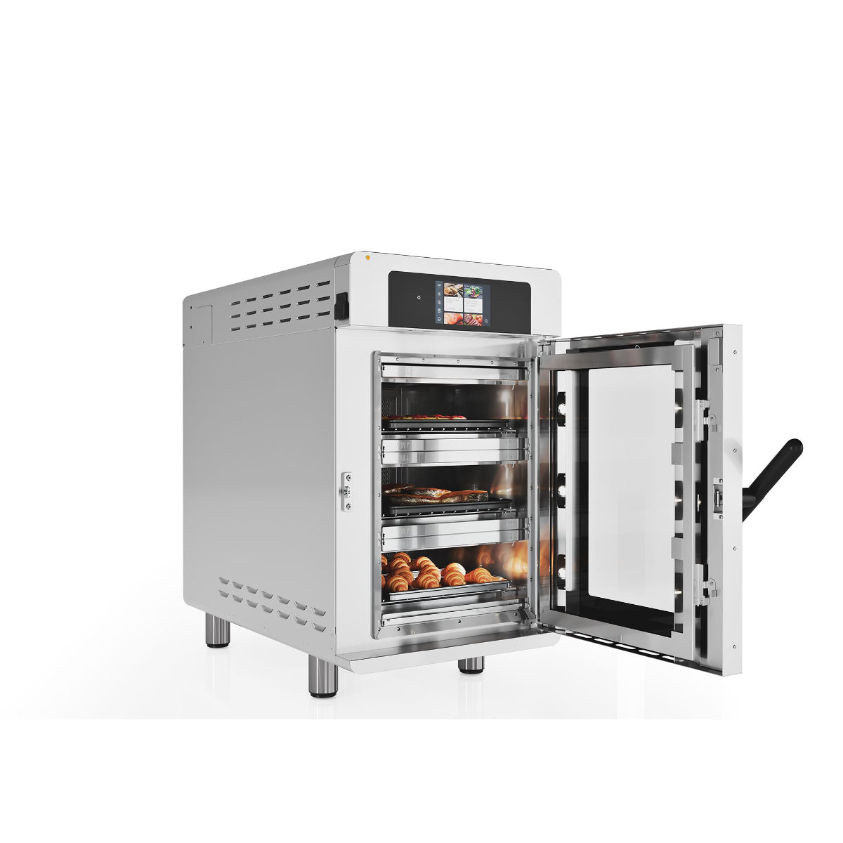 Un panel de control de pantalla táctil intuitivo significa que no necesitará chefs experimentados para cocinar sus productos exclusivos. Simplemente preestablezca una receta, guárdela en el sistema y, con solo tocar un botón, podrá guisar costillas, hornear papas o derretir el queso en quesadillas. Para compartir recetas fácilmente, aproveche el puerto USB incluido.