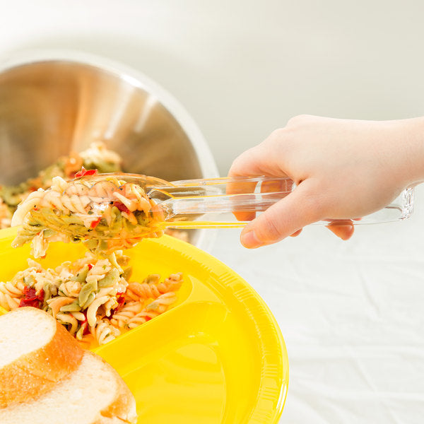 Las pinzas utilitarias de policarbonato transparente Carlisle Carly eliminan la molestia de lavar, transportar y reemplazar los costosos cubiertos. Perfectas para servir ensaladas frescas o palitos de pan, estas pinzas para servir brindan la misma gran funcionalidad que los cubiertos de alta calidad con los beneficios y la conveniencia de los cubiertos desechables. Dado que son capaces de soportar temperaturas de -40 grados centígrados a 100 grados, estas pinzas son excelentes para servir panecillos calientes y platos principales. Los catering, los lugares para bodas y las líneas de buffet encontrarán que estas pinzas para servir son una excelente alternativa para mantener un inventario de cubiertos costosos.