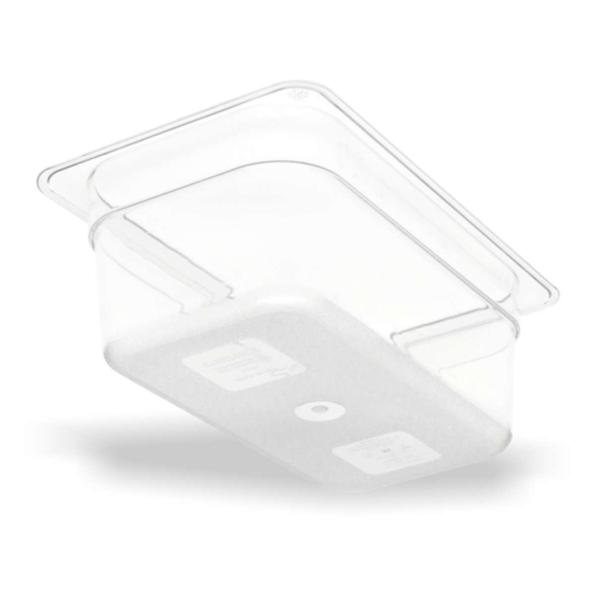 Mantenga los alimentos frescos por más tiempo con este recipiente transparente para alimentos de Carlisle. Esta bandeja para alimentos está hecha de policarbonato transparente y duradero con un acabado interior liso. Las esquinas superiores e inferiores reforzadas ofrecen soporte adicional y mayor resistencia contra roturas y deformaciones, mientras que un fondo que se puede colocar con una cuchara agrega rigidez estructural y facilita el acceso a los contenidos internos.