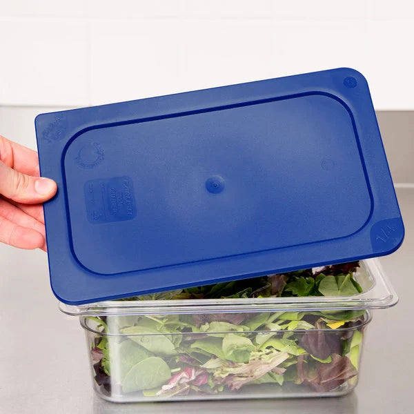Almacene los alimentos de forma segura con esta cubierta de polietileno con sellado seguro para bandejas de alimentos. Diseñada para mantener los alimentos frescos durante más tiempo, esta cubierta protege el contenido de los alimentos en un recipiente para alimentos de tamaño compatible (se vende por separado) de contaminantes y desechos externos. Se puede utilizar con todas las profundidades de recipientes para alimentos de tamaño compatible. Hecha de polietileno duradero, esta cubierta resiste el uso repetido en cocinas comerciales y operaciones de catering muy concurridas. Es ideal para usar en mesas de preparación, refrigeradores y hieleras. Si bien reduce el riesgo de contaminación cruzada, también elimina la necesidad de una envoltura de plástico.