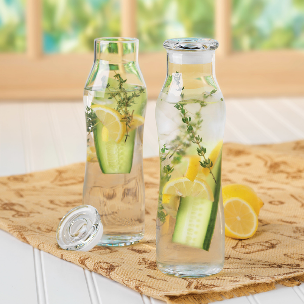Esta botella de hidratación de vidrio Libbey tiene un diseño delgado y elegante que muestra con estilo jugos, cereales y agua. Cuenta con una amplia abertura para facilitar el llenado y la limpieza.